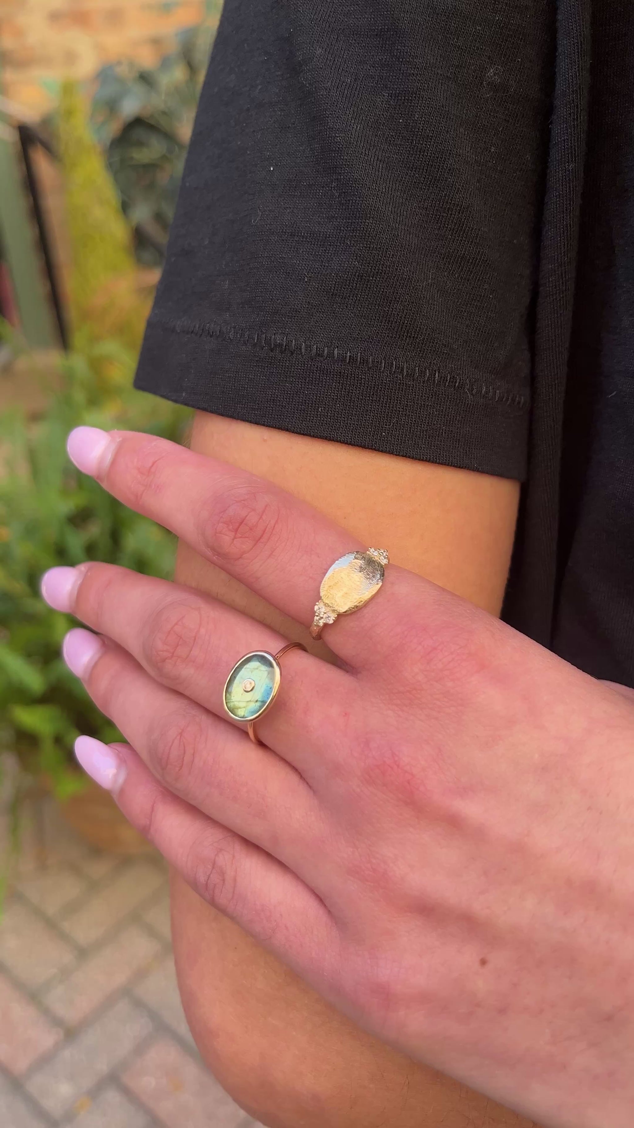 The Gaby collection from Pascale Monvoisin draws inspiration from the texture and sheen of gold leaf with diamonds artfully interwoven. The Gaby No2 ring is a style that can be worn dressed up or down.