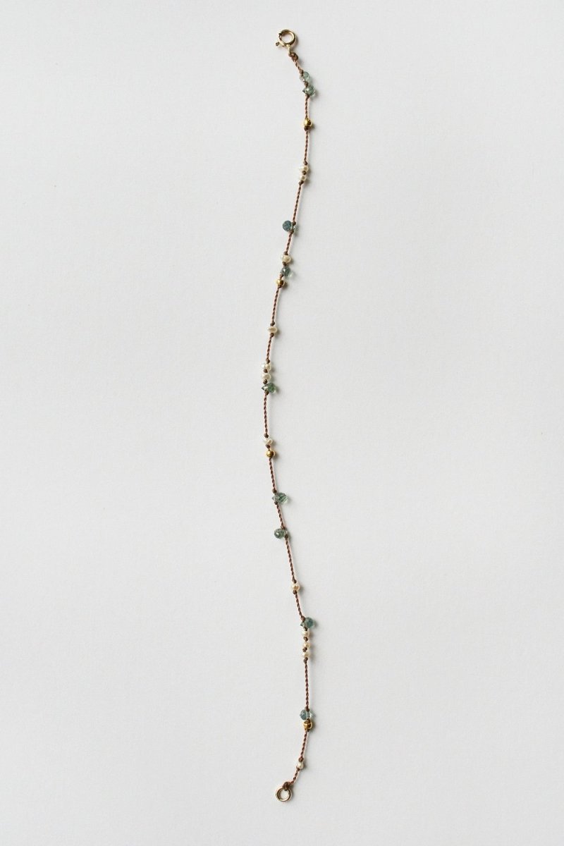 Dew drop bracelet with sapphires knotted on a nylon cord.