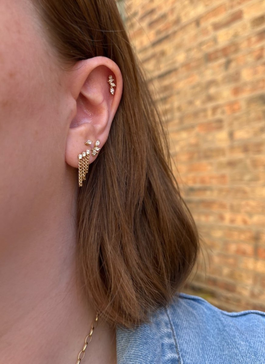14k Gold Diamond Curb Chain Waterfall Earrings