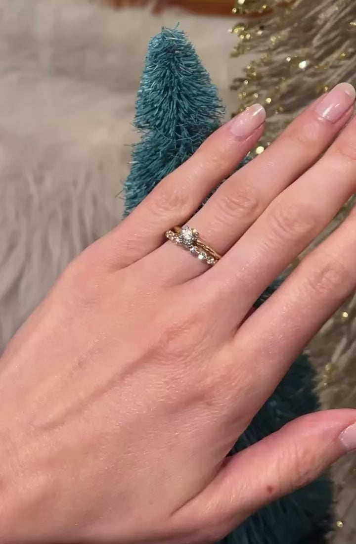 A beautiful round diamond set in four white gold prongs on a yellow gold knife edge band.
