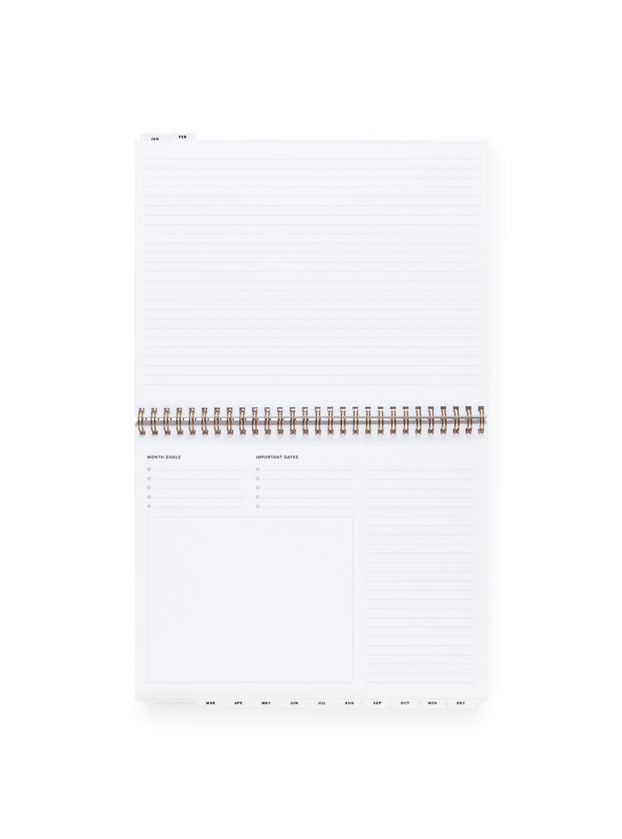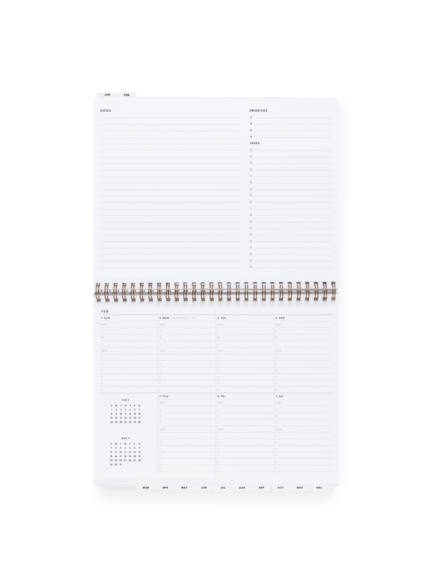 The Weekly Task Planner packs a productivity punch with weekly spreads, a Sunday start, and an hourly break-down of each day. The opposite page (or top page if laid open) features plenty of room for notes, tasks, and priorities so all your to-dos can live in one place, plus goals and monthly pages for big-picture planning. Better yet, wire-o top-binding makes this planner the ideal choice for left-handers.