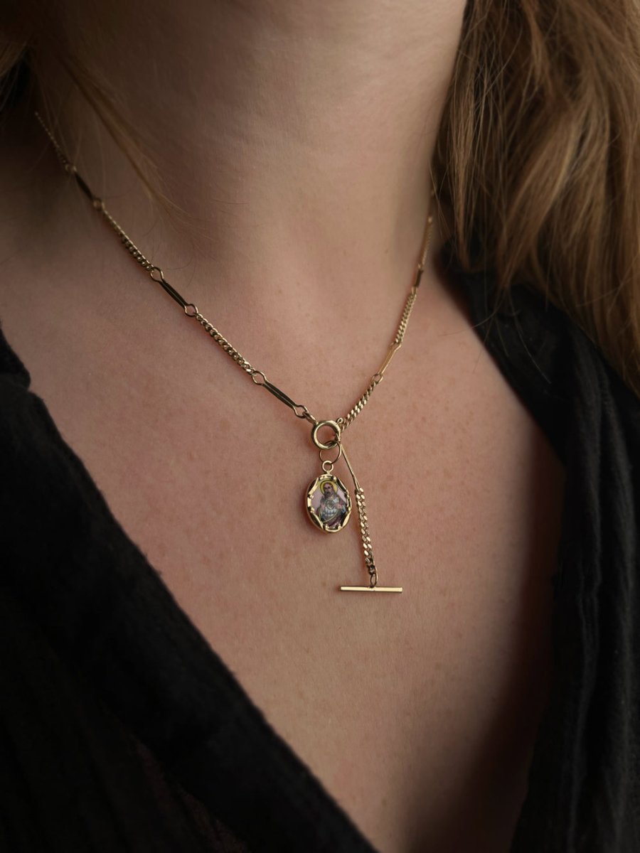 Vintage hand painted enamel religious charms from Portugal set in either 10k or 14k gold.