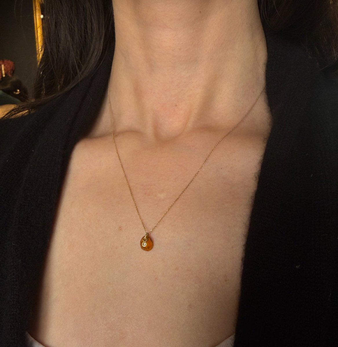 14k Gold Tourmaline + Diamond Necklace