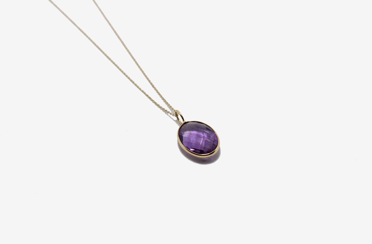 18k Gold Oval Amethyst Pendant Necklace