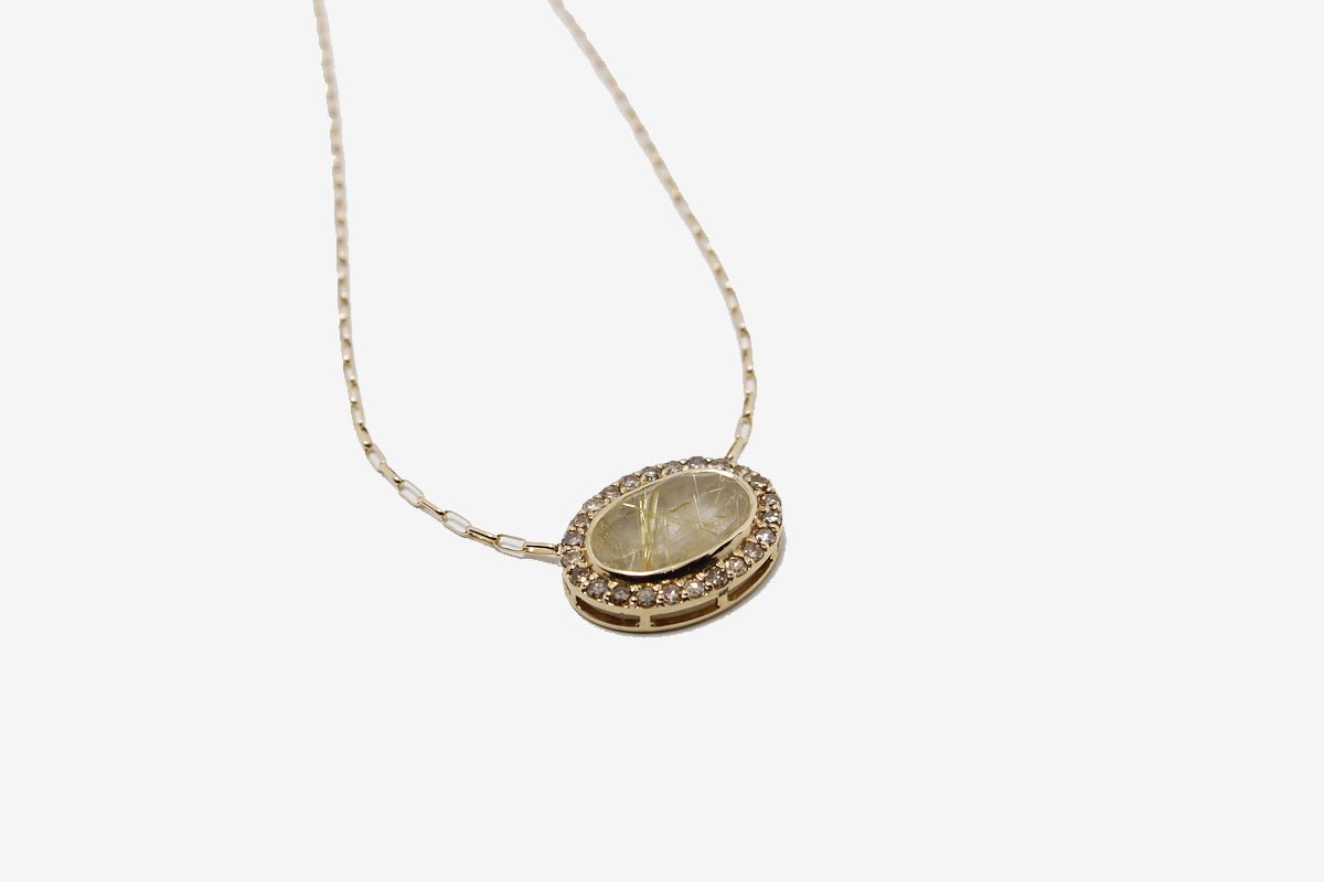 10k Gold Rutilated Quartz + Diamond Pendant Necklace