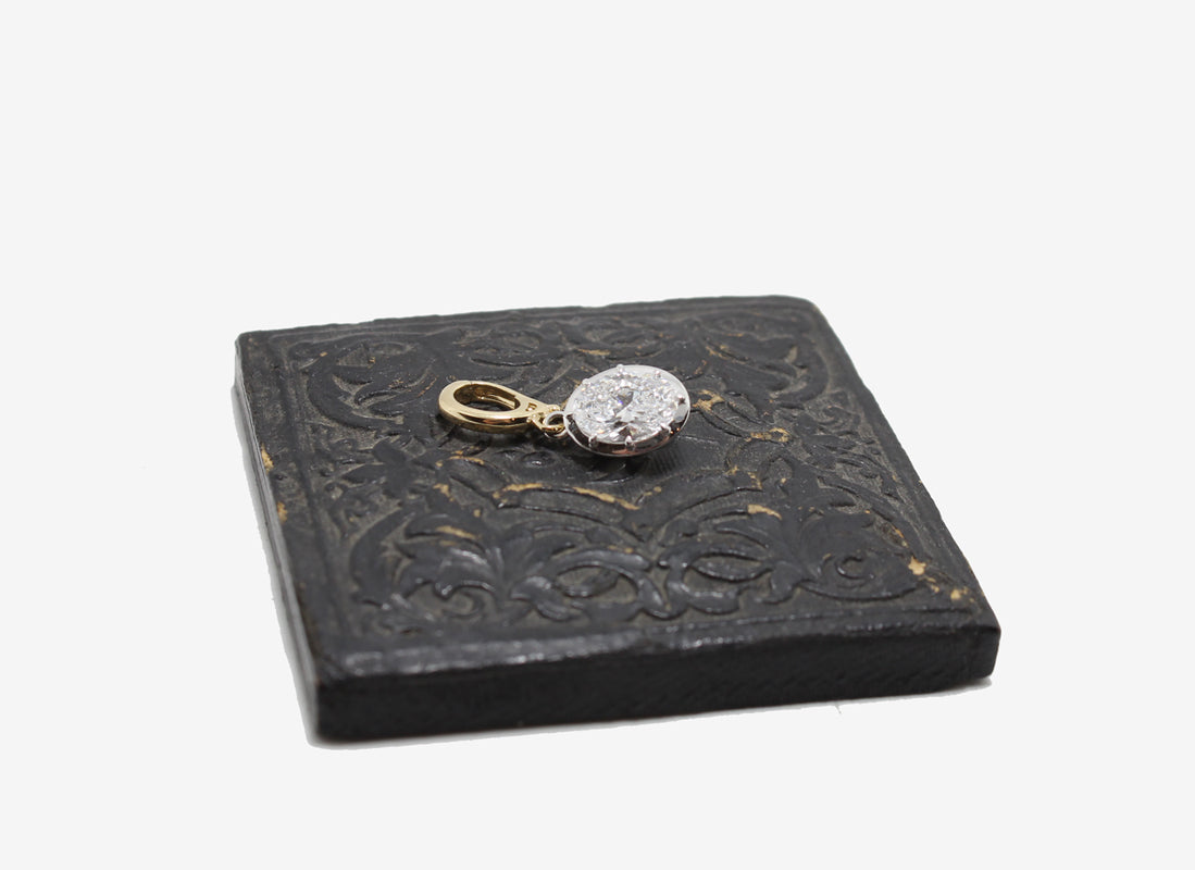 A lab grown diamond charm set in gold with a "clip on" style bail.