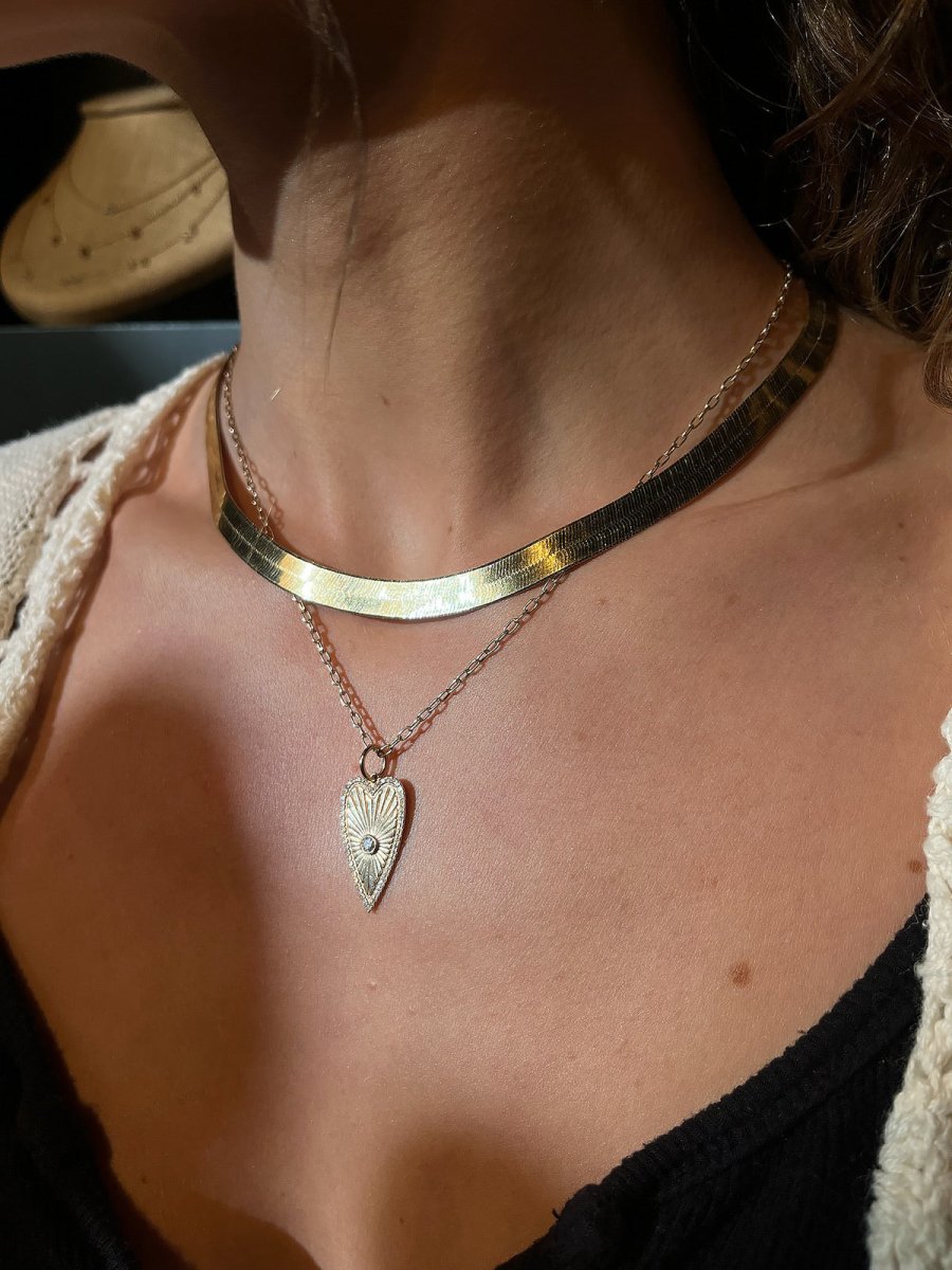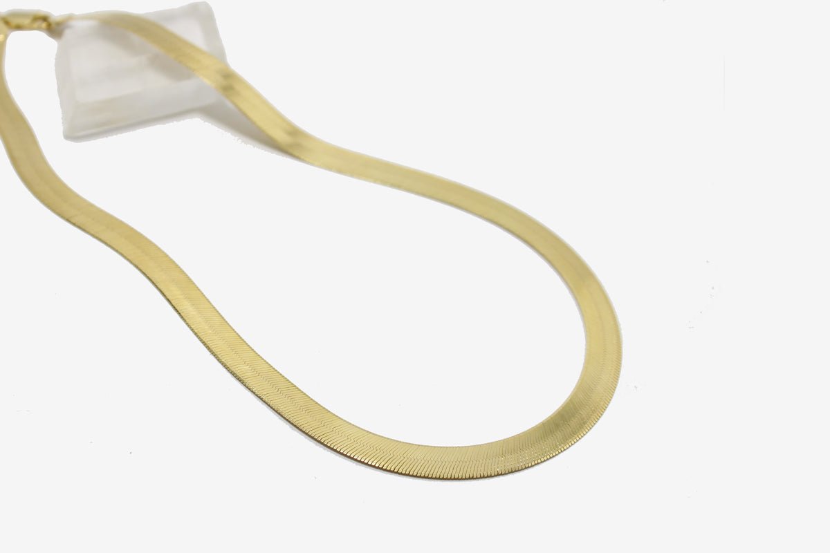A thick, solid gold herringbone chain necklace. The perfect bold piece to elevate any look.