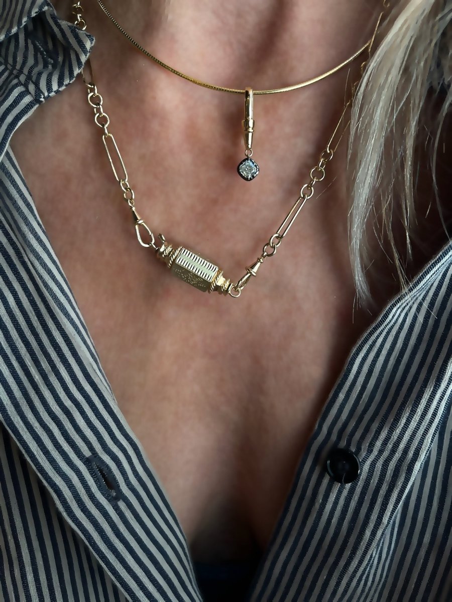 A gold omega chain necklace that looks great as is or style with your favorite pendant!